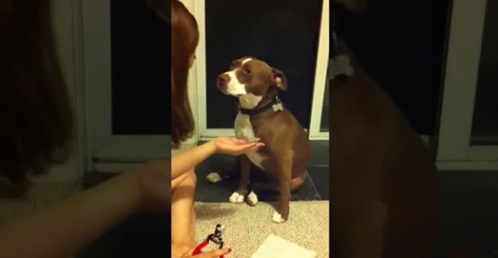 Jej właścicielka ma obcinacz do paznokci w dłoni i pyta psa, czy chce jej dać łapę. Pitbull nie chce jednak mieć obcinanych pazurów i robi wszystko, aby kobieta nie mogła dokończyć zabiegu. Najpierw siedzi, jakby nic nie słyszał. A gdy jego opiekunka łapie za łapę, pies zaczyna inną technikę- udaje, że mdleje!