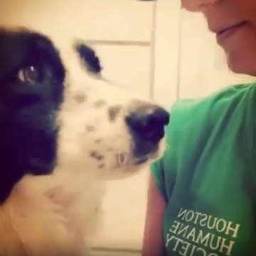 "Kiedy podszedłem do jego boksu, na początku nie widziałem nawet psa, dopóki nie spojrzałem w kąt, widziałem, jak zamarł z przerażenia, próbując stać się niewidzialnym" - powiedział Bertholet. "Natychmiast usiadłem na podłodze, odwróciłem się od niego, czekając, aż przyjdzie do mnie. Po kilku minutach ostrożnie zbliżył się do mnie."