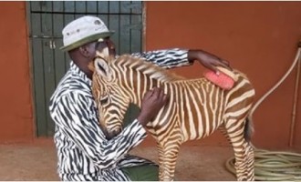 Ratownicy dzikich zwierząt ubierają się w paski, aby zostać "matką" dla osieroconej zebry