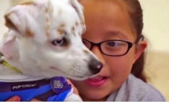 Poruszająca reakcja głuchej dziewczynki, która spotyka psa z takim samym upośledzeniem