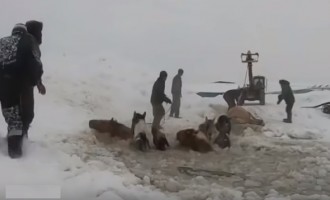 Stado koni utknęło w zamarzniętym jeziorze. Ratownicy próbują je uratować