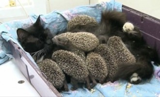 Te małe jeże zostały sierotami- wtedy interweniuje kotka o wielkim sercu