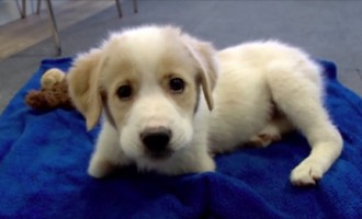 Szczeniak porzucony z powodu niepełnosprawności po raz pierwszy próbuje chodzić