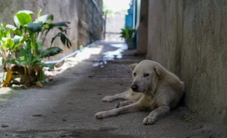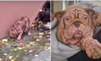 Porzucony pies musiał jeść liście, aby przeżyć