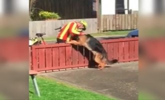 Właściciel owczarka niemieckiego dyskretnie filmuje co listonosz robi z jego niebezpiecznym psem