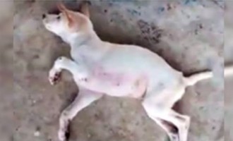 Umierający pies na leżący ulicy ignorowany przez przechodniów