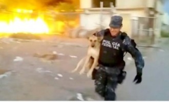 Ten człowiek naraża własne życie aby uratować psa z pożaru