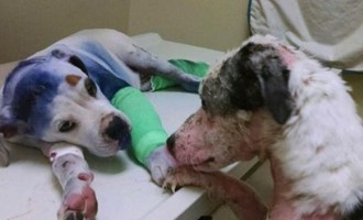 Maltretowany szczeniak znajduje opiekuńczego przyjaciela, gdy najbardziej go potrzebuje