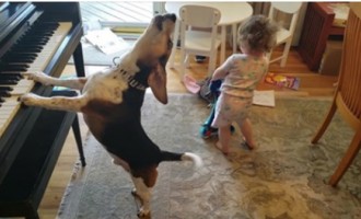 Ten pies gra na pianinie i śpiewa a dziewczynka tańczy- surrealistyczny moment