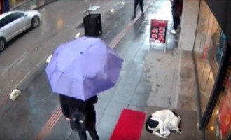 Prosty i szlachetny gest kobiety wobec bedomnego psa marznącego na dworze