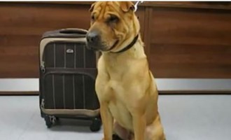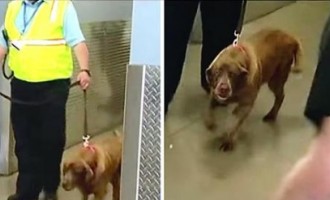 Smutny pies znaleziony porzucony na dworcu, przywiązany do walizki, w której był jego dobytek