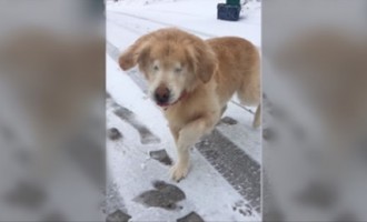 Ten niewidomy i głuchy pies odkrywa śnieg- jego reakcja rozgrzewa serce