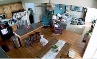 Pies zalewa dom wężem ogrodowym - czekaj, aby zobaczyć USZKODZENIA