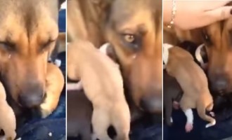 Pies płacze prawdziwymi łzami po uratowaniu szczeniąt