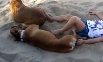 Ta dziewczyna postanawia kopać śpiącego psa w brzuch. Bokser dał jej nauczkę. VIDEO