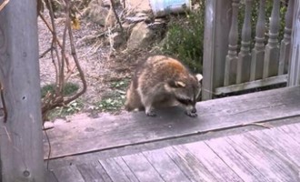 Kobieta karmi niewidomego szopa a potem filmuje, gdy wraca z dwoma ochroniarzami