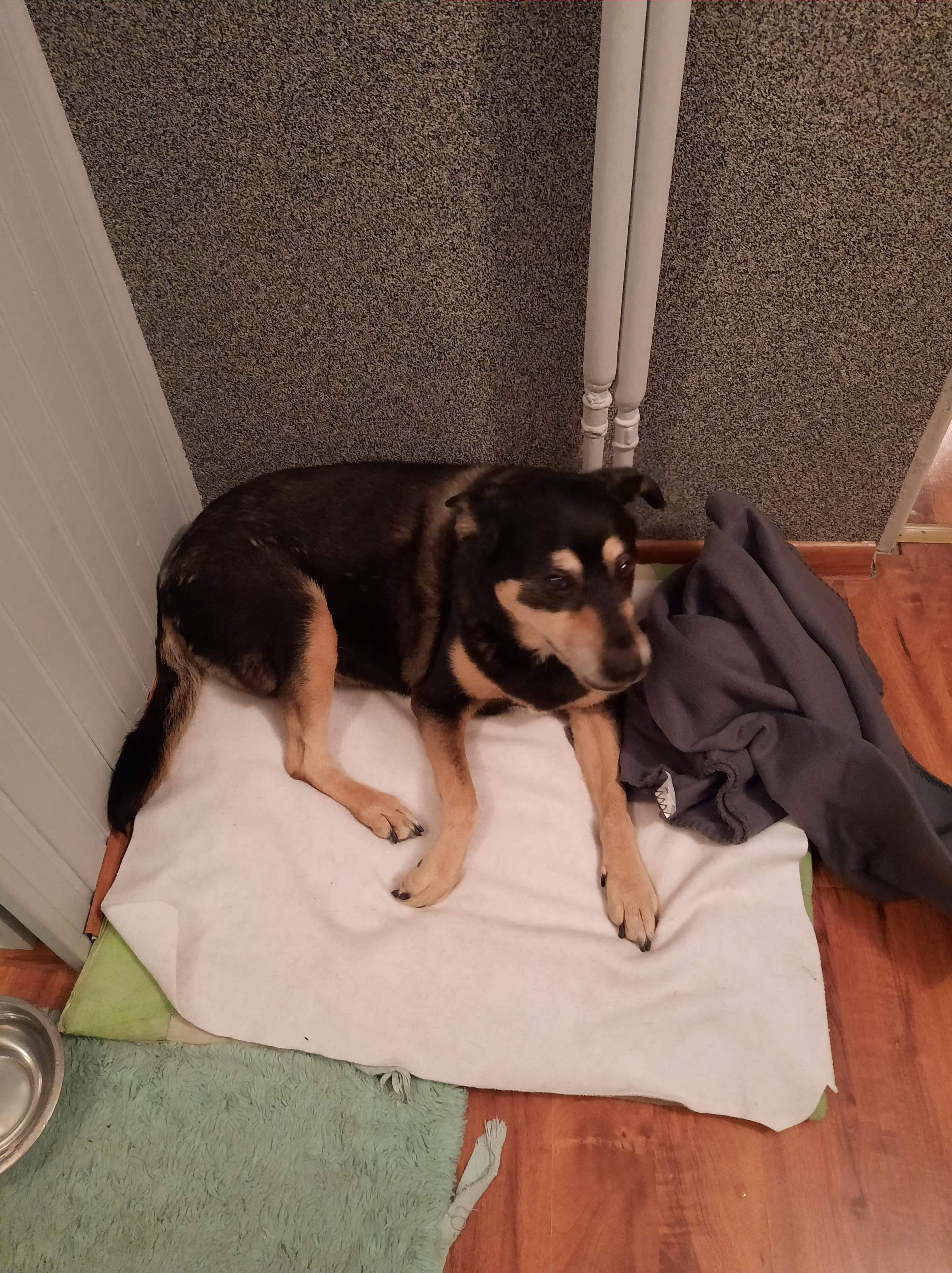 Tina.. 15 letni mieszaniec. Znaleziona w śmietniku, właśnie potrzebuje Twojej pomocy. Tina ma raka kości, prawej przedniej łapki. Dla uratowania jej życia konieczna jest amputacja łapki