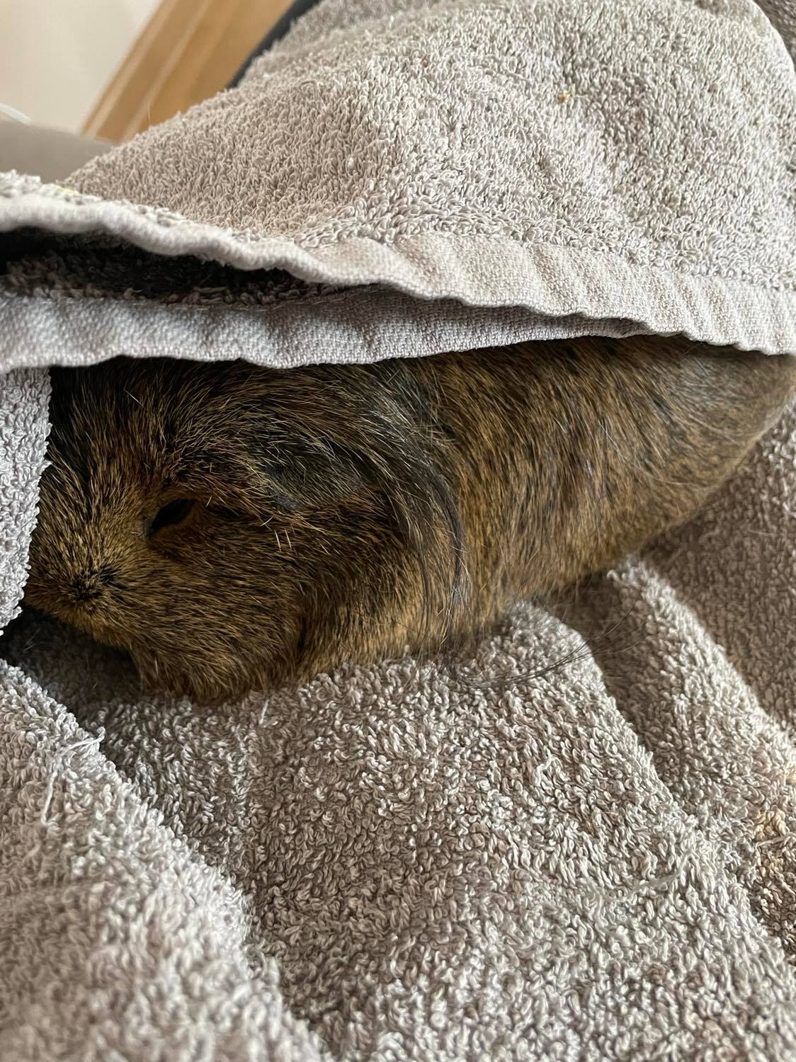 22.02.2022 r. nie usłyszałam rano jej głośnego wołania o jedzenie. Kiedy przyniosłam warzywa - nie wyszła z klatki, Myszka pojawiła się sama. Balbina leżała w kuwecie, mało reagowała. Nie chciała jeść, pić, ruszać się. Próbowałam ją zachęcić natką pietruszki (jej ulubione warzywo, zawsze pierwsza do zjedzenia), ale to nie pomogło... Mówi się, że świnka nie je = świnka umiera. Te kochane gryzonie muszą ciągle jeść, żeby żyć, a ona już kilka godzin nic nie przełknęła. Po około 2 godzinach doglądania jej (nadal nie jadła, nie chodziła, zamykała oczy) zadzwoniłam do weterynarza z prośbą o pomoc. Balbinka pojechała do kliniki, okazało się, że faktycznie coś się dzieje, ale nie jest jeszcze wiadomo co, była bardzo słaba. Okazało się, że musi zostać wykonane USG, badania krwi, RTG, kroplówki, leki, a sama Balbina zostaje na przynajmniej półtorej doby w szpitalu weterynaryjnym. Możliwe cysty, skręt żołądka, zapalenia jelit... Koszty są ogromne, przerastają mnie... do tej pory sobie radziłam, ale wiem, że muszę to zrobić dla mniej, bo to mój przyjaciel. W sumie wychodzi około 800 zł...