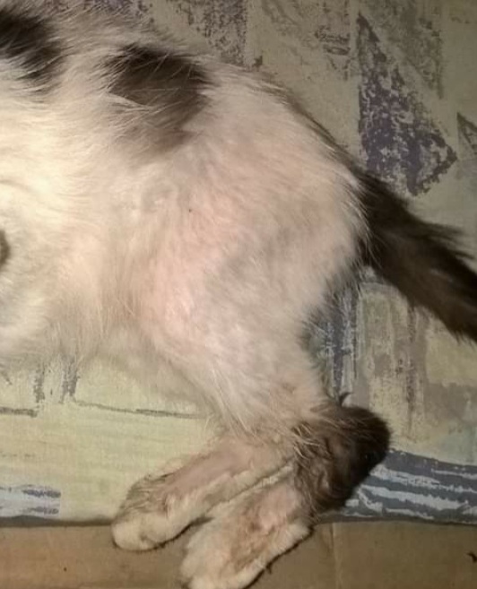 Biedna, chora, sterana życiem i poniewierką, szukała pomocy u ludzi. Ale kto by chciał zaprosić taką biedę do swojego domu? Kto by chciał, dać jeść i pić i... żeby jeszcze pokochał...Trafiła pod moją opiekę w stanie krytycznym. Bardzo słaba i apatyczna, odwodniona, zapchlona, koszmarnie wychudzona, sama skóra i kości, z trudem łapiąca każdy oddech, z temperaturą grubo poniżej normy, pokryta strupami. Mała, ale dorosła, biało - czarna kruszynka...Waży tyle co kilkumiesięczny kociak... niecałe 2 kg.