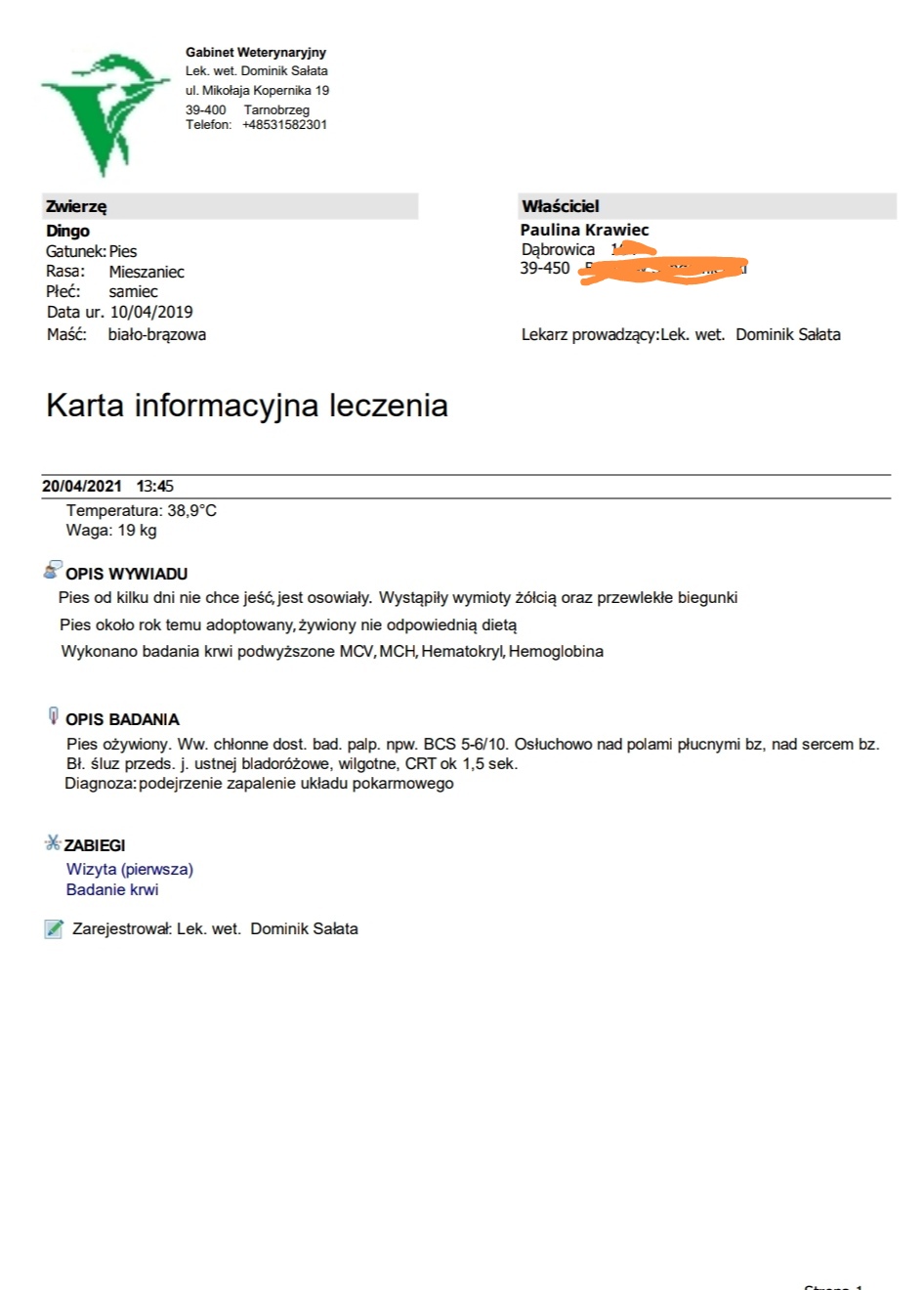 Pewnego dnia Pani zabrała mnie do Pana doktora bo strasznie bolał mnie brzuszek nie chciałem jeść ciągle tylko spałem, bałem się na początku ale potem okazało się że nie jest tak strasznie.