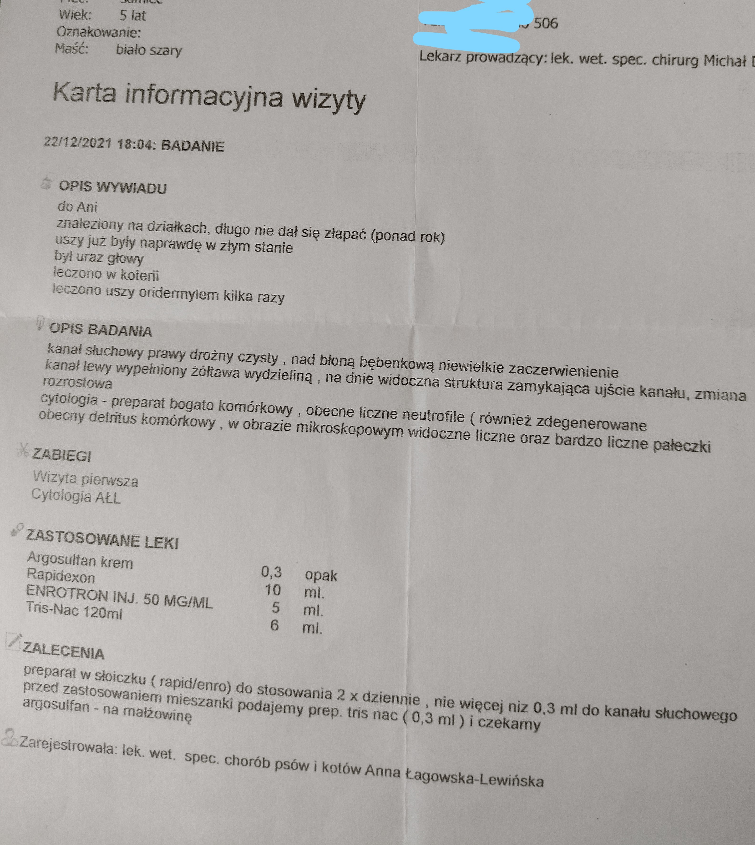 Zbieramy fundusze na chorego około pięcioletniego kotka wyrzuconego w lesie. We wrześniu 2021 roku z działek w lesie koło Radzymina został zabrany kotek w złym stanie zdrowia. Przebywał tam od wielu miesięcy, jednak dopiero wtedy zaczął ufać człowiekowi i podchodzić bliżej. Miał świerzb w uszach, dużą ranę na głowie i opuchnięty cały pyszczek. W pierwszej kolejności trafił do Koterii w Warszawie, gdzie został wykastrowany, a jego rany wyleczone. Jednak nie mógł tam zostać dłużej. Znalazła się osoba, która zgodziła się go przygarnąć, by nie musiał spędzić kolejnej zimy w lesie. Szybko okazało się, że problem z uszami jest dużo większy, niż się wydawało na początku. Po kilku konsultacjach i leczeniu farmakologicznym, które nie przyniosło efektów, okazało się, że w uchu znajduje się mocno ropiejąca zmiana rozrostowa, która wymaga dalszej diagnozy. Na tą chwilę należy wykonać kosztowny rezonans magnetyczny, który pozwoli stwierdzić jaki charakter ma zmiana, jak głęboko sięga i jakie ma rozmiary. Potem kotka czeka operacja, co wiąże się z kolejnym wydatkiem. Koszty znacznie przekraczają możliwości pani, która go przygarnęła, a która utrzymuje się jedynie z emerytury. Dlatego bardzo prosimy o pomoc. Kocurek przeszedł już swoje, został wyrzucony, przetrwał zimę na działkach, długo już znosi ból związany ze swoją chorobą. Zasłużył, by wreszcie cieszyć się swoim nowym domem w zdrowiu.