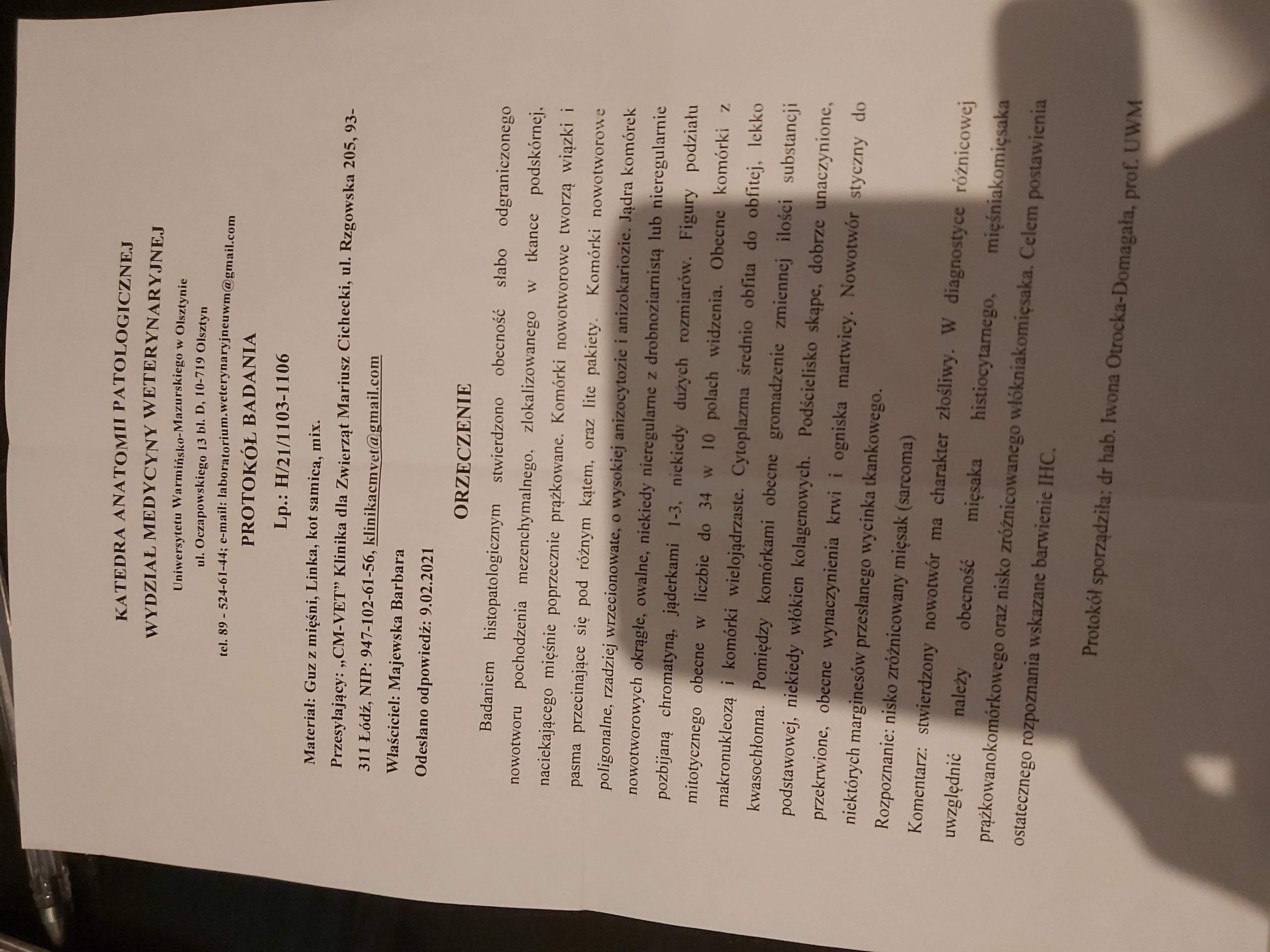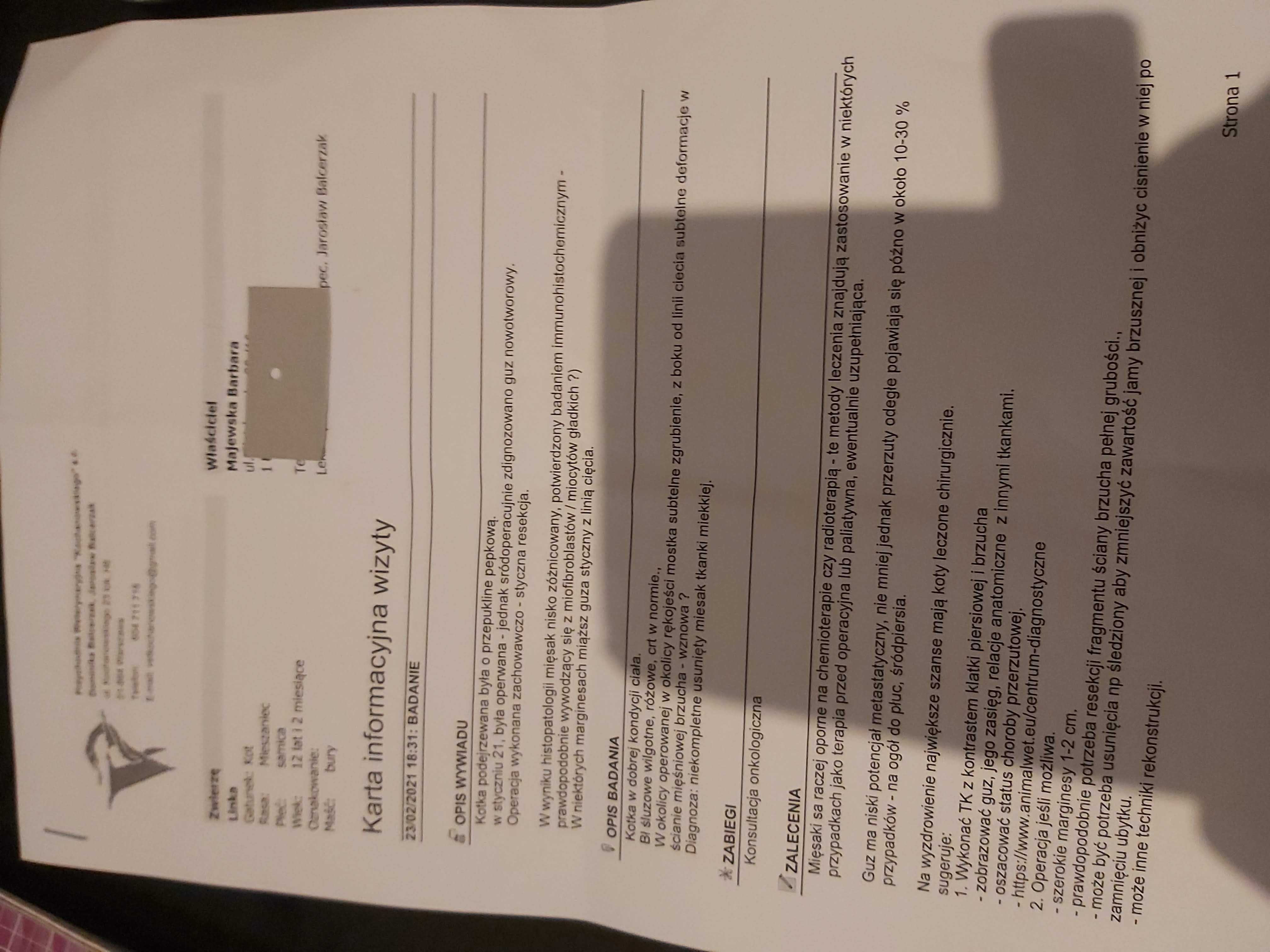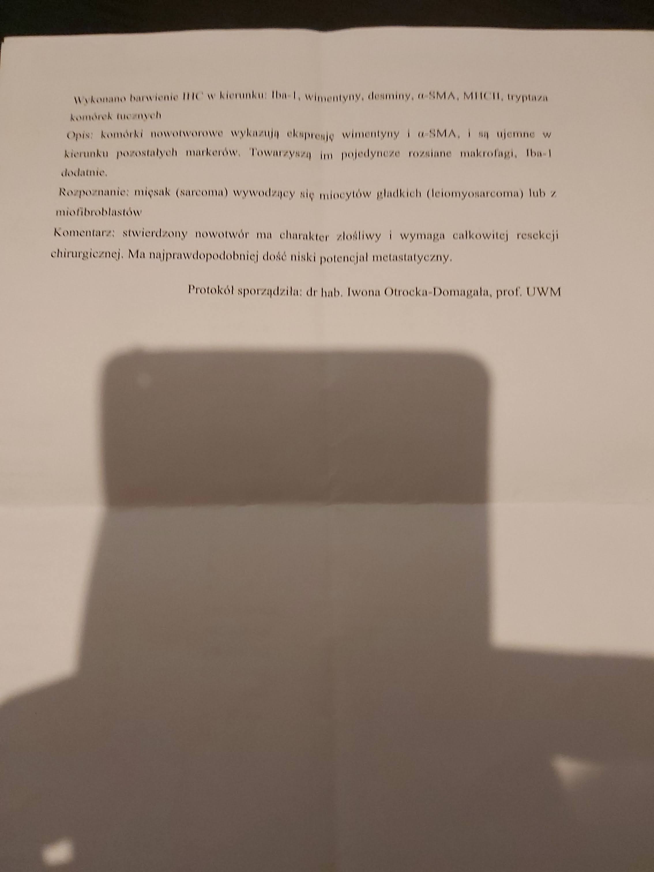 Niestety - w styczniu zdiagnozowano u mnie mięsaka. Jestem już po pierwszej operacji, ale nie wiadomo, czy usunięto całego guza, ponieważ badanie histopat. potwierdziło, że komórki rakowe były styczne z marginesem z którym wycięty był guz (sięgają granic marginesu).