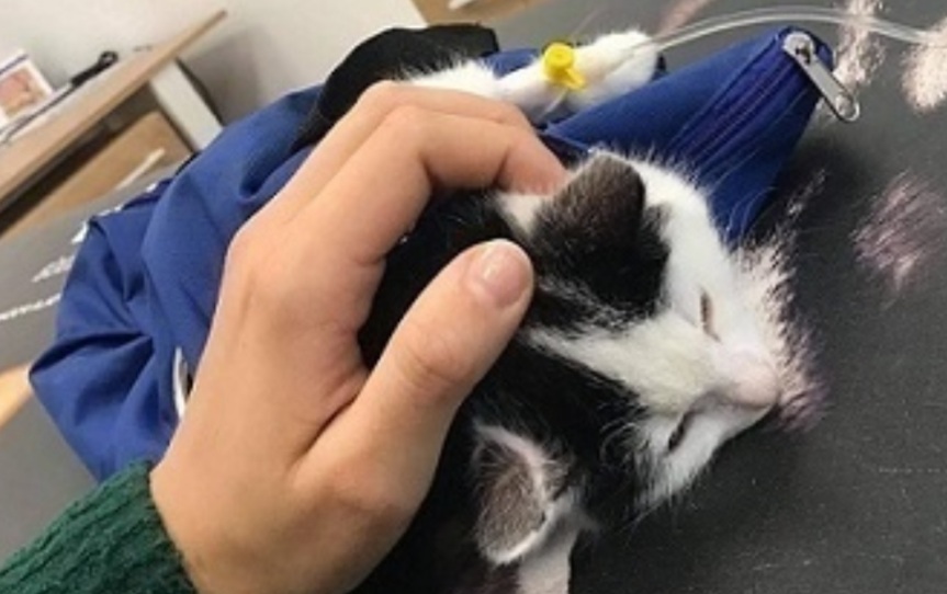Mały kotek walczy z anemią