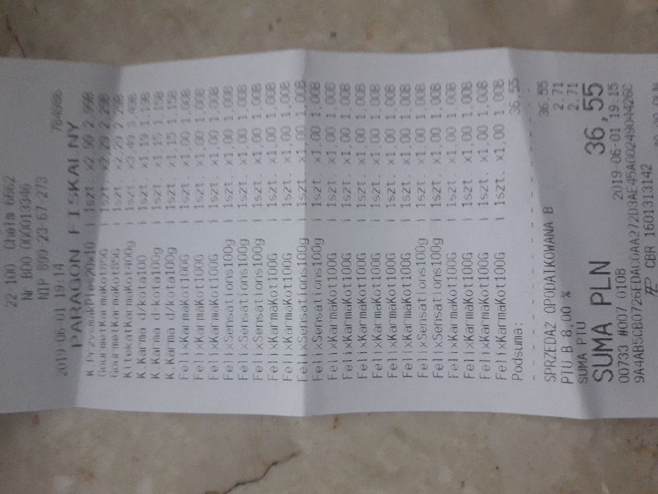 2.06 - Dzięki podarowanym pieniążkom, za część z nich, zakupiliśmy smakołyki dla kociaków. Dziękujemy raz jeszcze :) W załączeniu zdjęcie paragonu i karmy.