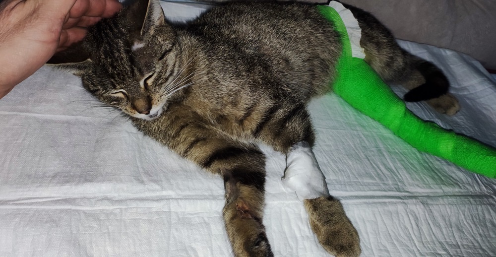 Zawieźliśmy ją szybko do weterynarza, tam kroplówki, zastrzyki, prześwietlenia, kompresy,etc. Zapadła w hipotermię :-( Ale dała radę, dzielna z niej kotka! Z tego miejsca chcemy podziękować lekarzom z Erjot Jelenia Góra za pierwszą pomoc i fachową opiekę.