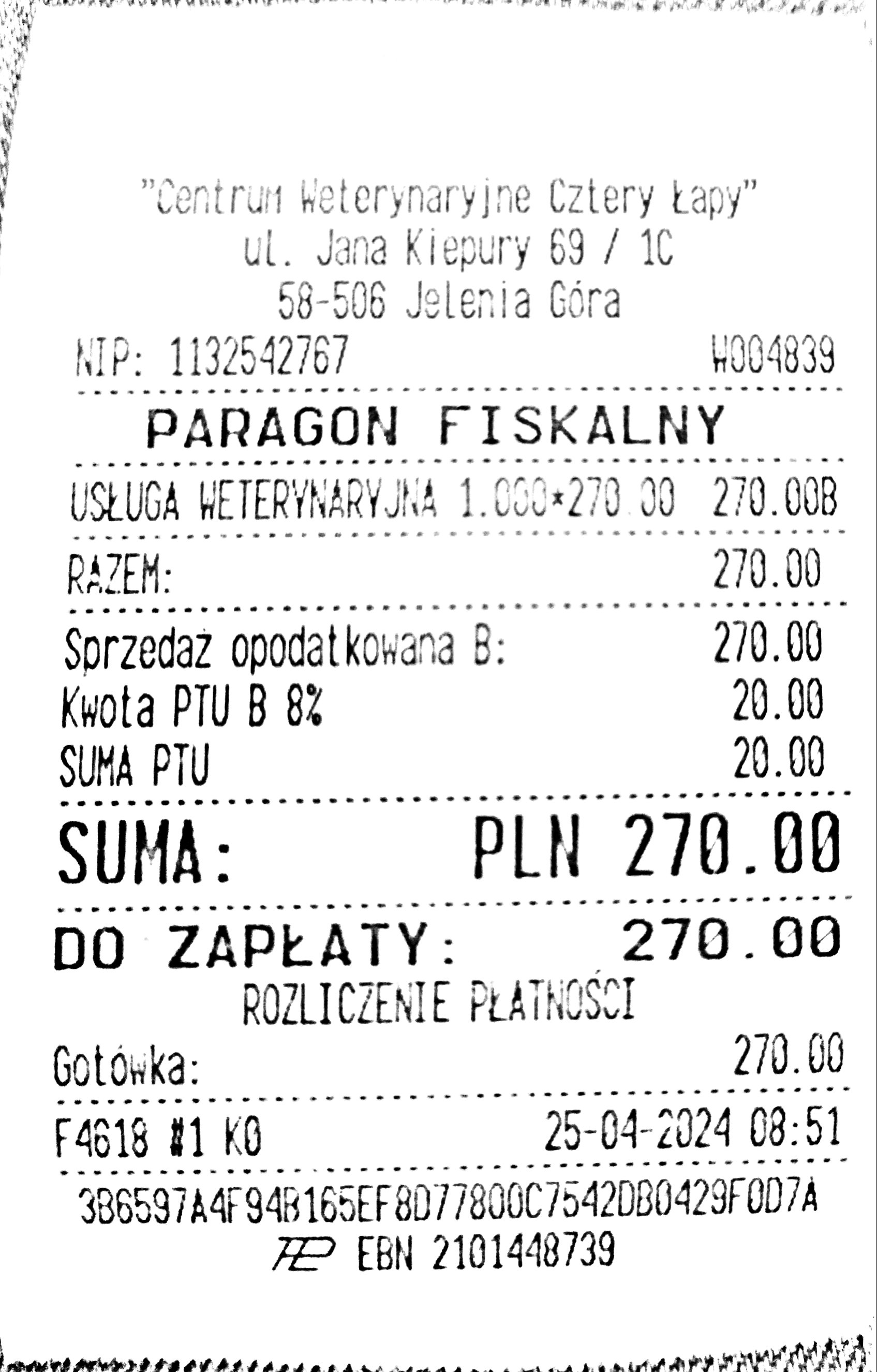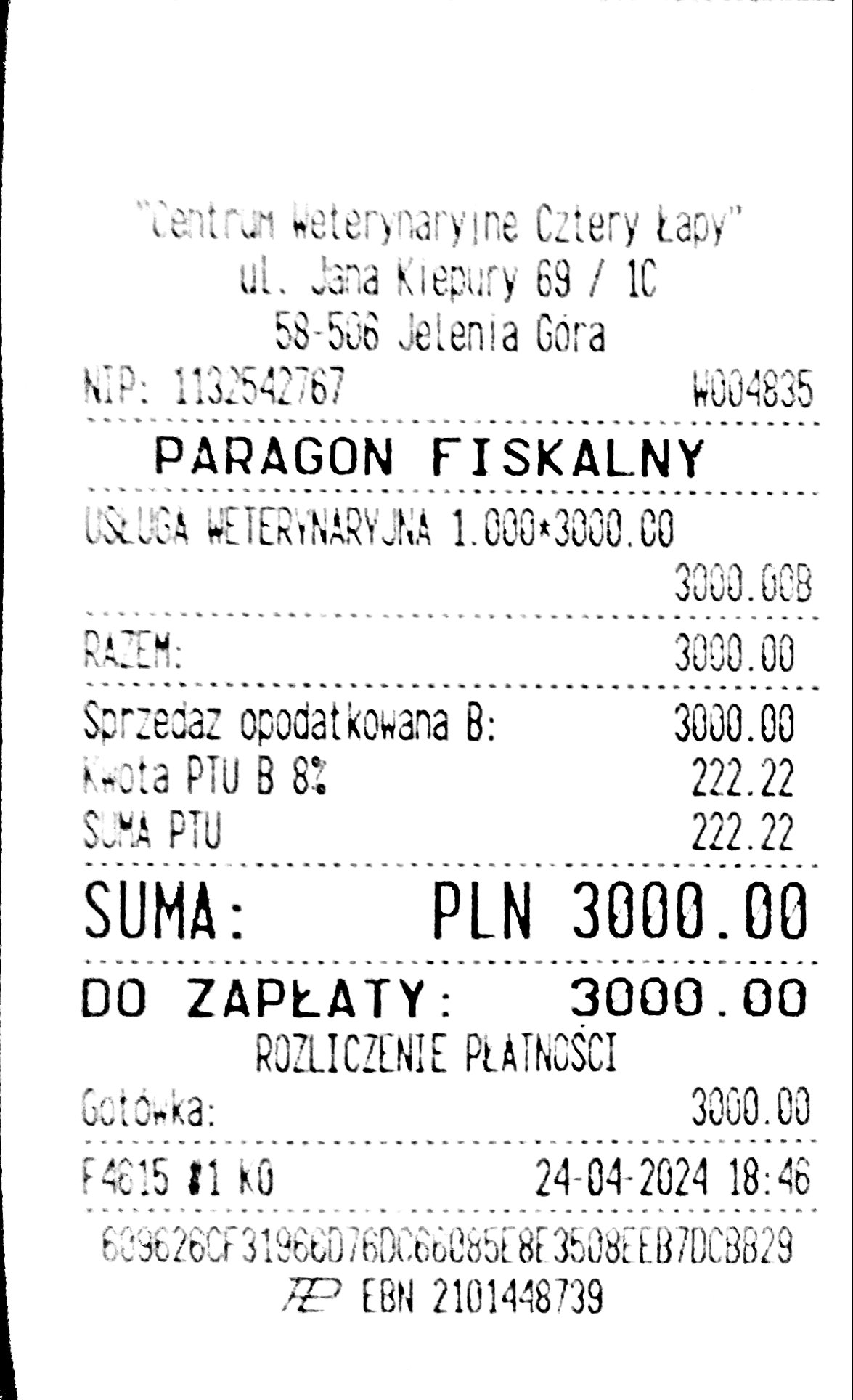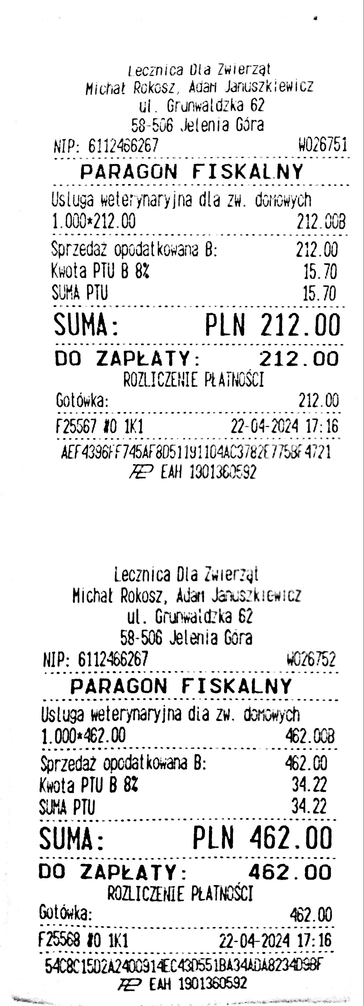 Każda złotówka ze zbiórki zostanie udokumentowana paragonem od lekarzy z gabinetu 4 Łapy w Jeleniej Górze, którzy podobnie jak wszyscy lekarze do tej pory potraktowali nas bardzo uczciwie.