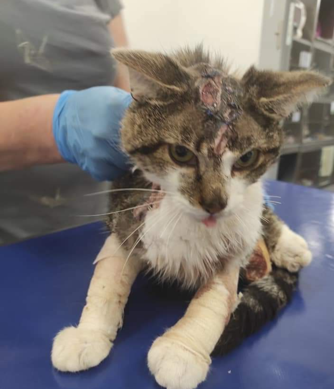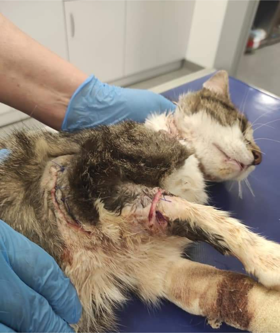 Rany zostały oczyszczone i zabezpieczone, jednak żeby wdrożyć pełne leczenie, pilnie musimy wykonać koteczce dodatkowe badania: badania z krwi, rtg łapki i klatki piersiowej, usg jamy brzusznej, a w późniejszym czasie również zabieg sterylizacji. Badania, leczenie i hospitalizacja koteczki - to dla mnie ogromne koszty. Nie mam na to pieniędzy - konto świeci pustkami. Proszę pomóżcie kotce. Liczy się każda złotówka.