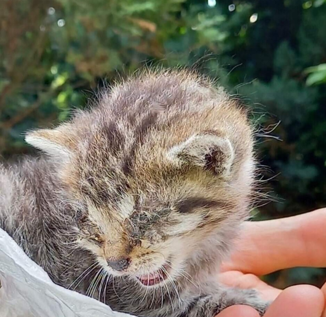 Kotek ma koci katar, świerzb, zapalenie ucha środkowego, jest bardzo wychudzony.