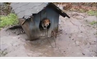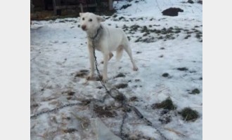 Szczeniak bez budy na łańcuchu