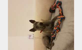 Trzymany cały czas w kagańcu bo szczeka