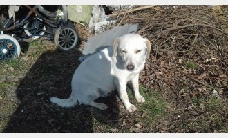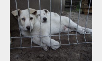 Dwa białe psy wyrzucone na wysypisko śmieci