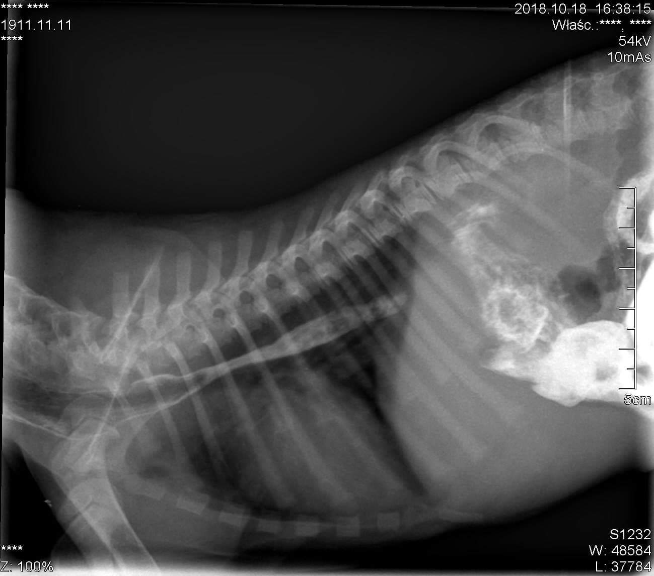 ) widać ucisk który blokuje cały proces trawienia malucha dlatego też bardziej prawdopodobną diagnozą jest ŁUK AORTY, piesek każdego dnia się męczy więc dajmy mu szansę na normalne życie tym bardziej, że to dopiero maluch, jest wesoły, che się bawić, lecz przez chorobę po chwili się męczy i nie ma siły, wymaga ona zdiagnozowania oraz operacji z pobytem w szpitalu, pomóżmy mu! Ja wraz z jego obecnymi opiekunami zajmujemy się nim najlepiej jak potrafimy, jesteśmy technikami weterynarii pod opieką lekarza weterynarii w Nysie, ale tylko z waszą pomocą zdołamy mu pomóc i dać nowe życie!