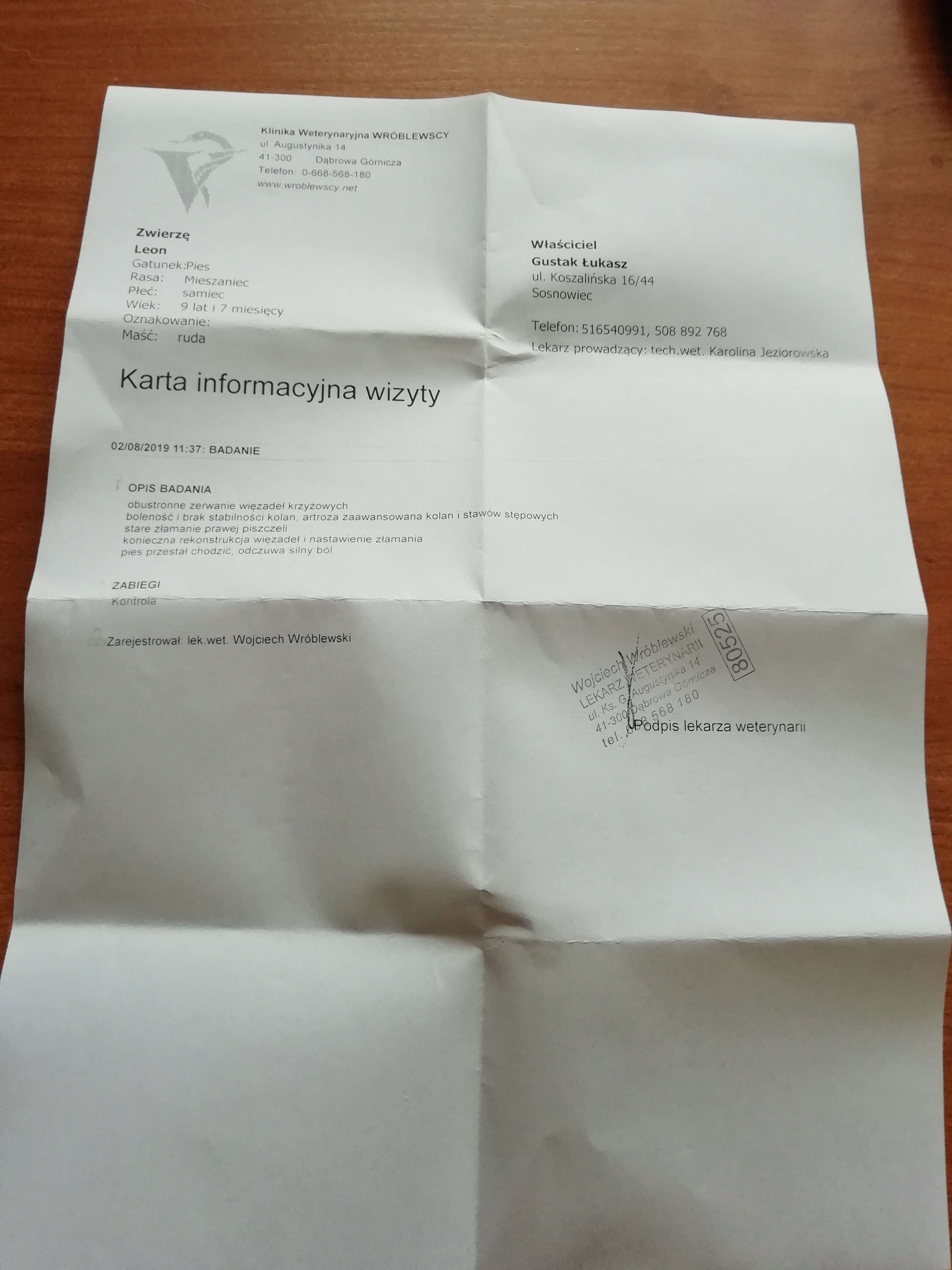 Dzis Leos jest już po operacji drugiej przedniej łapki. Wszystkim i z osobna dziękujemy za wsparcie. Podczas wizyty okazało się, że Leos musi mieć operacje na dwie tylne łapki. Koszt operacji to około 2500zl. Załączam opis ortopedy.