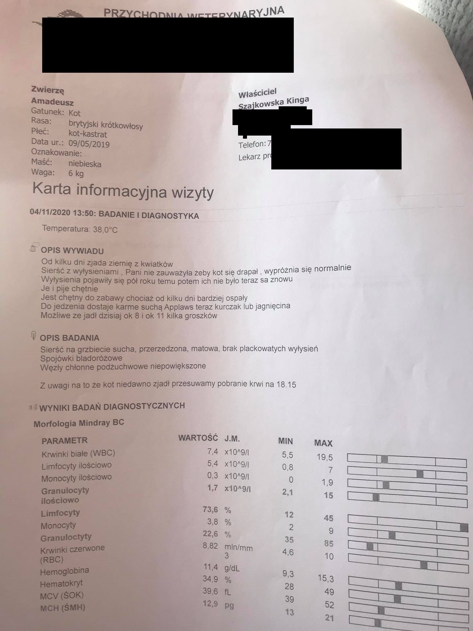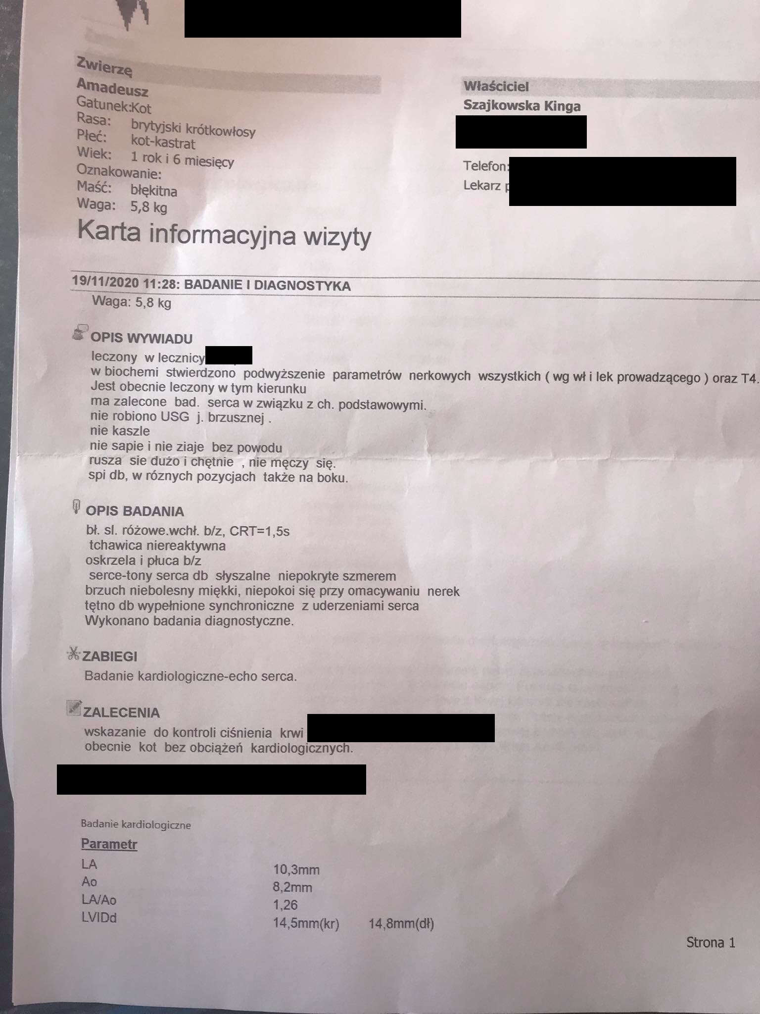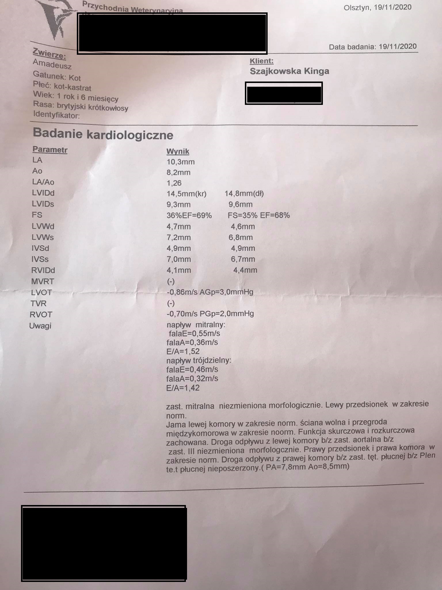 Dzięki poprzedniej zbiórce, która przerosła Nasze najśmielsze oczekiwania pod względem szybkości (za którą jesteśmy ogromnie wdzięczni), udało się Nam w jakimś stopniu pokryć koszty pierwszych badań (biochemii, morfologii, badań moczu, echo serca, leków na nerki, badań na tarczycę, badań na krzepliwość krwi, badań SDMA).