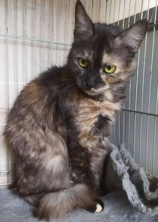 Kilka dni temu uratowałam bezdomną, chudą kociczkę szylkretkę spod kół samochodu i przyjęłam do siebie na tymczas.