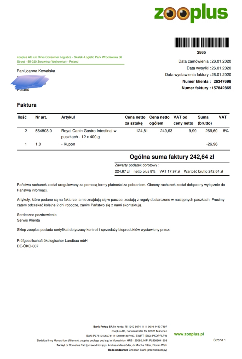 Miko choruje na zapalenie przewodu pokarmowego oraz zapadanie tchawicy. Psiak musi być na specjalnej diecie Royal Canin oraz lekach przez 3 tygodnie gastrointestinal. Koszt samej karmy jest dla mnie bardzo duży, na tydzień wychodzi 242 zł
