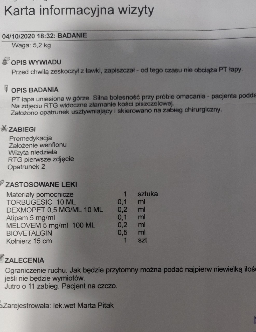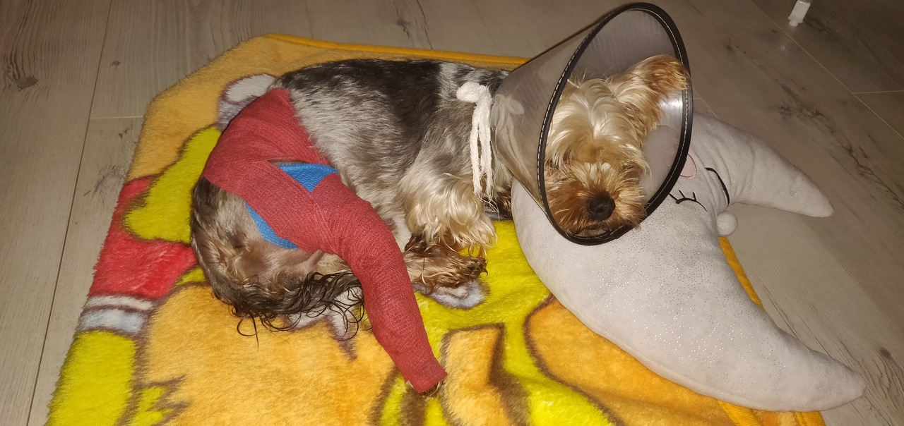 Witam mam na imię Pepuś mam 7 lat jestem pieskiem rasy Yorkshire Terrier ... Jestem pieskiem który uwielbia skakać , przytulać się , bawić , być rozpieszczany i chodzić na długie spacery . Do dnia 4/10/2020 kiedy nie fortunie zeskoczyłem i złamałem sobie prawą tylną łapkę ... Ale nie płakałem tak bardzo bo wiedziałem ze moja Pani mi pomożę i będzie wszystko dobrze i wrócę do zdrowia ... Udaliśmy się szybko do weterynarza który zlecił nam operacje , żeby poskładać mi łapkę ... Dnia 5/10/2020 roku odbyła się operacja ... Pan Weterynarz stwierdził , że jest z siebie dumny jak wykonał operacje...Jeżeli Pan Weterynarz powiedział , że jest z siebie DUMNY to znaczy , że wszystko się udało i minie trochę czasu i będzie dobrze ... I tak myślałem ... Założyli mi gips na otwartą ranę i we wtorek 06.10.2020 roku pozwolili mi wrócić do domku ... Przepisali antybiotyk i kazali przyjść na kontrole ...07.10.2020 roku udaliśmy się na wizytę również dlatego bo nie umiałem zrobić siusiu ... Zostały przepisane kolejne leki ... pani Doktor kazała przyjść w poniedziałek 12.10.2020na prześwietlenie nóżki czy dobrze się zrasta ... I wtedy wszystko się zaczęło ... Moja Pani powiedziała pani Doktor , że czuje brzydki zapach z mojej nóżki ... Tak naprawdę Pani Weterynarz oglądając gips na mojej nóżce powiedziała : ' Nie widzę tu żadnych otarć ' moja Pani po raz kolejny powiedziała , że ten zapach jest bardzo intensywny i czy coś nie dzieję się pod złego pod gipsem . Pani Doktor przeprosiła opuściła pokój w którym nas przyjmowała wykonała telefon do Pana Doktora który stwierdził , ze musze zostać na chwilkę i zobaczą co się dzieje ... Okazało się że został nałożony mi gips na otwartą ranę która nie miała jak się goić , nie były zmieniane opatrunki , że nóżka zaczęła gnić .... Pani Doktor po tygodniowym czasie po operacji przemyła mi ranę założyła opatrunek , szynę i puściła do domu ... Na wizytę zaprosiła dnia następnego 13.10.2020 dostałem zastrzyk po których urósł mi guzek .... Moja Pani zapytała czy zostanie zmieniony mi opatrunek na nóżce , Pani Doktor powiedziała , że go nie zmieni bo jestem agresywny , kazała nam przyjść na wizytę 16.10.2020 roku i porozmawiać z Panem Doktorem który był tak dumny z operacji ... Ale moja Panią zaczęło to nie pokoi jak można zostawić mnie z niezmienionym opatrunkiem więc postanowiła poprosić o wcześniejsza wizytę z Panem Doktorem ... Pani na recepcji kazała przyjechać 14.10.2020 roku o 21:30 ale niestety na moim bandażu pojawiła się krew wiec szybciutko udaliśmy się do weterynarza gdzie usłyszałem : Nawet nie oglądając nóżki , nikt nie ściągnął mi opatrunku padły słowa : W tym przypadku najlepszym rozwiązaniem jest Amputacja Łapki.. Ale jak to jeszcze 3 tygodnie temu latałem za piłeczką wszystko było dobrze... A teraz mam być pozbawiony łapki ? Z winny Lekarza który powiedział : Jest z siebie DUMNY jak wykonał operacje ... Dlaczego nie powiedział od razu , że łapka do niczego już się nie nadaję tylko mówili , że będzie dobrze ... Kazali przychodzić na wizyty które bardzo dużo kosztowały ... Wiedzą dobrze , ze popełnili błąd zakładając gips na świeżo otwarta ranę bez zmiany opatrunku ... Nie chcą się do tego przyznać ... Na pocieszenie mojej pani powiedzieli , że ma sobie włączyć filmik na YouTube i zobaczyć jak radzą sobie pieski bez łapki... Ale moja Pani nie daje za wygraną zabiera mnie do innej Pani Doktor która będzie się starała odratować moją łapkę .. Tylko tu jest prośba do Was Kochani ... Leczenie moje będzie bardzo kosztowne .. Moja Pani ma sama problemy ze zdrowiem ... Po mimo tego oddaje ostatnie pieniążki na to żeby ratować moja nóżkę...Bardzo mnie kocha i wiem że nie da za wygraną !!! Więc proszę was o pomoc ... O jedną mała 1 zł ... Nie chce stracić łapki ... :( Jedna operacja zniszczyła wszystko ... Moja Pani myślała , że oddaję mnie w dobre ręce zapewniali że Będzie Dobrze ... A okazało się inaczej ... Nie usłyszeliśmy nawet słowa Przepraszam ... Ale czy to coś by zmieniło ? Teraz trzeba walczyć !!!! Płacić za błędy kogoś kto nie powinien być lekarzem ... :(