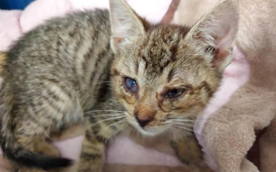 Błagam o pomoc dla niego! To malutkie kociątko zostało znalezione na polu!