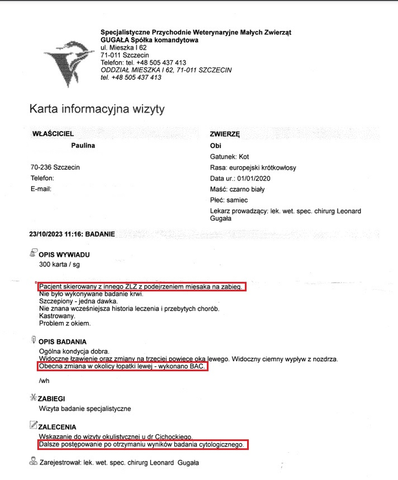 Witajcie, potrzebna pomoc dla kociaka o imieniu Obi – kociak został adoptowany ze schroniska w połowie października, chcieliśmy zapewnić mu spokojny kochający dom, nie zdążyliśmy zająć się leczeniem oczka a wynikła bardzo przykra sprawa mianowicie okazało się że kociaka dopadł Mięsak Poiniekcyjny – jest to bardzo złośliwy nowotwór tkanki łącznej . Charakteryzuje się szybkim rozwojem w momencie pojawienia się i bardzo dużą inwazyjnością dlatego najważniejsza jest błyskawiczna operacja. Koszt takiej operacji w klinice onkologicznej w Szczecinie to około 2500zł (Klinika Małych Zwierząt) później dochodzi leczenie pooperacyjne - radioterapia/chemioterapia koszt około 3000zł (nie wiadomo jeszcze ile razy). Musimy działać błyskawicznie żeby była szansa na uratowanie Obiego.