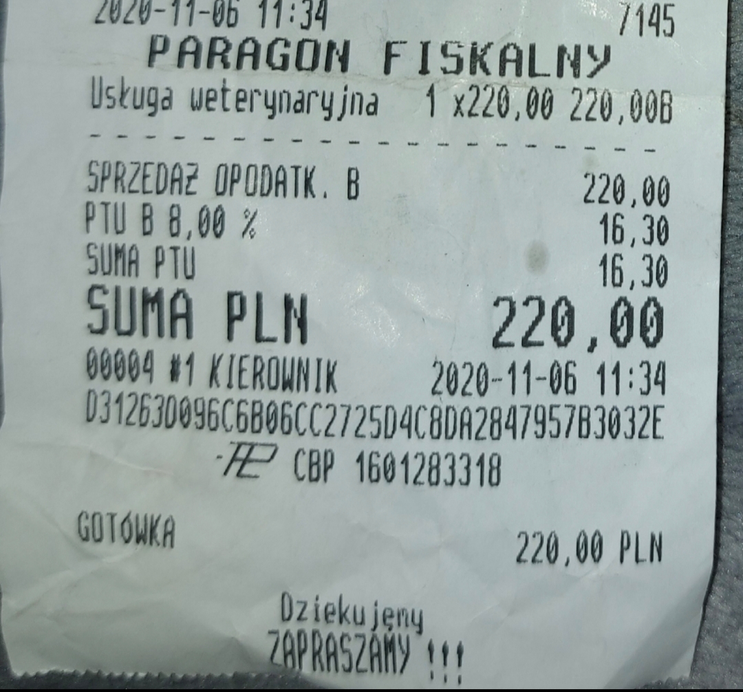 Szczęście, że tą drogą jechała akurat osoba, która umiała dostrzec pieskie nieszczęście, osoba, która już nie raz ratowała lub chociaż zdejmowała psie zwłoki zdrogi by nie zostrały rozjechane na miazgę. Tym razem potrącony psiak żył. Tyle że nie miał sił wstać. Został delikatnie przeniesiony do samochodu i zawieziony do całodobowej przychodni. Pies jeszcze tego samego wieczoru przeszedł operację przyszycia skóry żuchwy, miał wykonane USG, RTG, od lekarzy z Kliniki dowiedziałyśmy się, że pies ma złamaną łapę oraz stłuczone w wyniku potrącenia narządy.USG będzie powtarzane z uwagi na to, by monitorować, czy w narządach nie zbiera się płyn. Pies nie ma czipa, nie wiemy, czy ma właściciela, ale musimy szybko działać, bo być może ten pies ma dom. Pies przebywa w szpitalu w klinice. Bardzo prosimy o wsparcie.