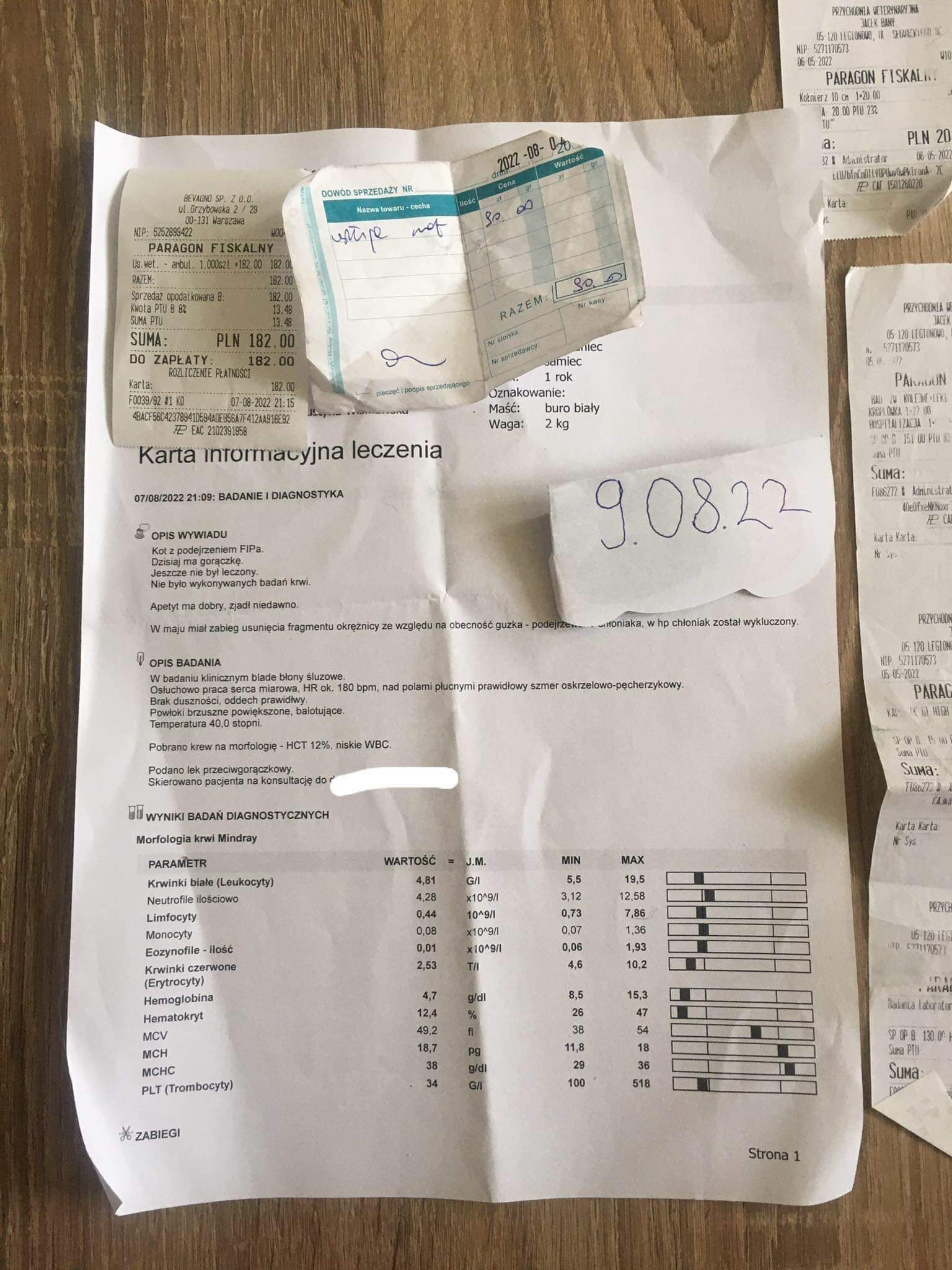 W zeszłym roku przygarnęłem do domu kilku tygodniowe maleństwo. Na początku sierpnia kotek stał się apatyczny, nie miał apetytu, nie chciał się bawić. Po konsultacji weterynaryjnej wiem już, że uratować mu życie może tylko bardzo drogi lek. Koszt takiej kuracji to około 10.000 zł. Przed nami dlugie leczenia i całkowity brak brak funduszy na zakup ampułek. Wiem, że przygarniając kotka z ulicy wzięłem na siebie odpowiedzialność za jego życie, ale nie byłem przygotowany na takie dużej wydatki. Błagam o pomoc! Będę wdzięczny za każdą, nawet niewielką wpłatę. Będę robić wszystko co w mojej mocy, żeby kocurek przeżył. Każdy grosik jest dla Nas na wagę życia.
