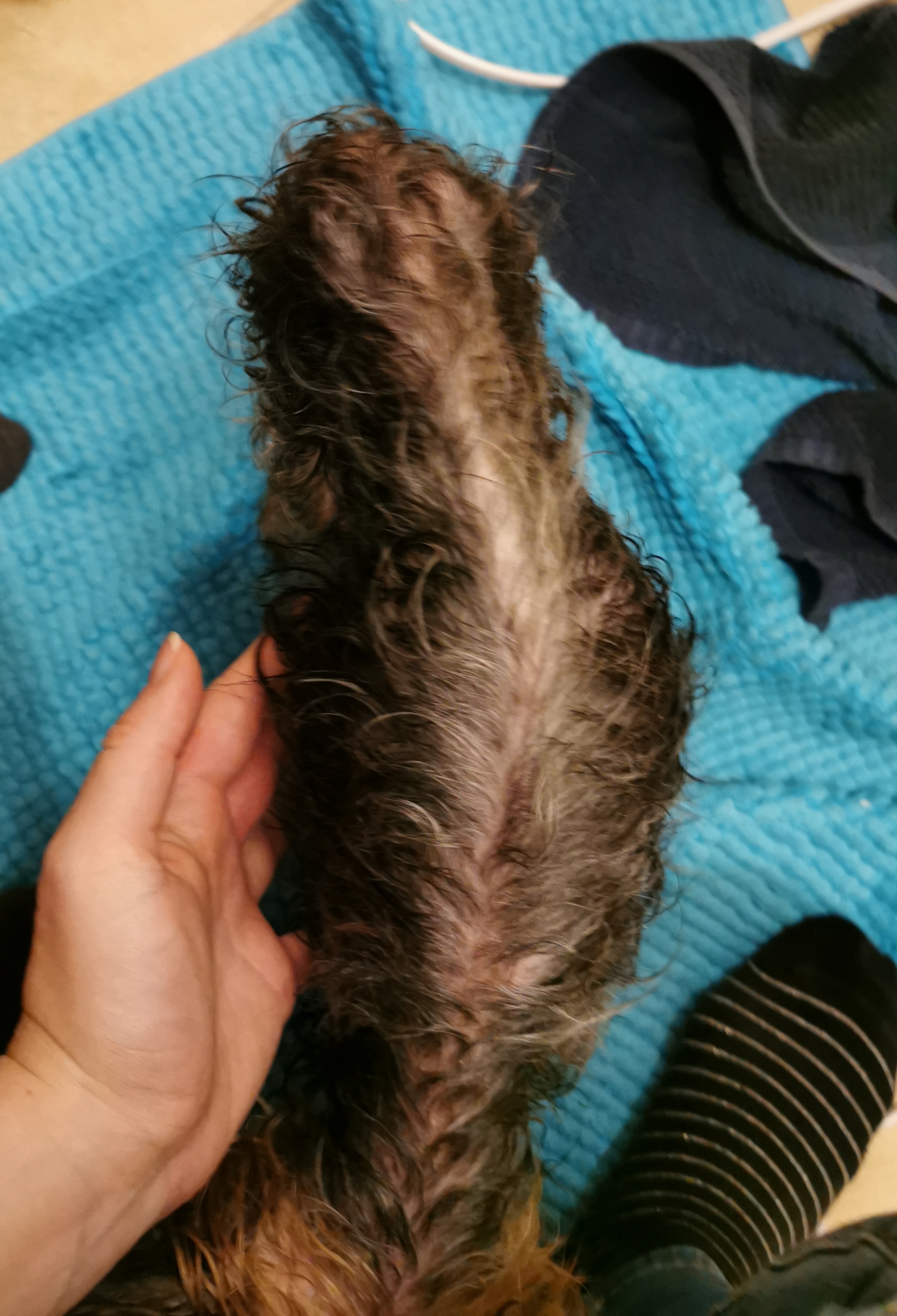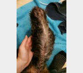 Pies cierpi z wycieńczenia i bólu, nie jest w stanie chodzić i utrzymywać równowagi. Przewraca się stojąc nie mówiąc o wychodzeniu na dwór. Gdzie się go postawi tam się załatwi pod siebie i czeka aż się go weźmie na ręce i zniesie do legowiska w mieszkaniu.