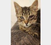 Proszę o pomoc dla kota z herpeswirozą. Mały Jake trafił do mnie tydzień temu i jak widać na zdjęciu został znaleziony z poważnie uszkodzonym oczkiem. Ma dopiero trzy miesiące. Jesteśmy po kilku wizytach u weterynarza oraz po badaniu u okulisty zwierzęcego. Bierze antybiotyk oraz kilka innych leków, ale nie są one w stanie wyleczyć go do końca. Mamy pewność, że maluch nie odzyska już wzroku na chore oczko, dlatego ważne jest, żeby jak najszybciej je usunąć, by wirus nie rozprzestrzeniał się dalej. Mimo wielkiego bólu, który kociak odczuwa, Jake jest pełen życia i zawsze gotów do zabawy. Proszę o wsparcie, aby mógł cieszyć się życiem i zdrowiem.